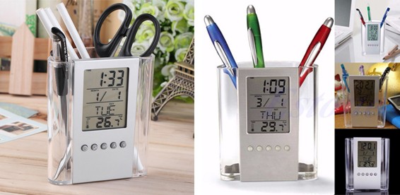 Порядок на столе – порядок в голове: так почему бы не прибраться на рабочем месте? Стильный настольный органайзер не только вместит в себя Ваши канцелярские принадлежности, но и послужит Вам календарём, таймером, термометром, чтобы всё важное всегда было рядом!